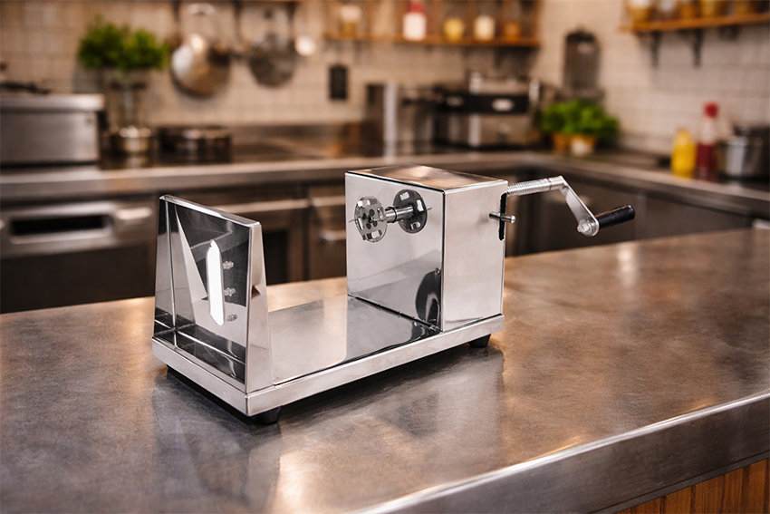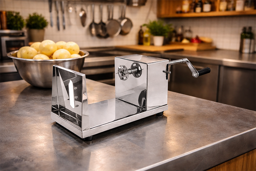 Dla każdego, kto prowadzi lub planuje prowadzić punkt gastronomiczny – stały lub mobilny – zakręcony ziemniak jest pozycją wartą uwzględnienia w menu. A kluczem do jego sprawnego i profesjonalnego przygotowania jest maszyna do zakręconego ziemniaka – proste, kompaktowe i niezawodne urządzenie, które w kilka sekund zamienia surowego ziemniaka w gotową do smażenia spiralę. Niska waga, solidna stal nierdzewna, prosta obsługa i łatwe czyszczenie to cechy, które sprawiają, że urządzenie sprawdzi się zarówno w mobilnym punkcie gastronomicznym, jak i w stałym lokalu.
