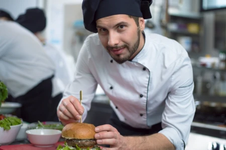 Bary szybkiej obsługi / fast-food: urządzenie pozwala w bardzo krótkim czasie przygotować burger.